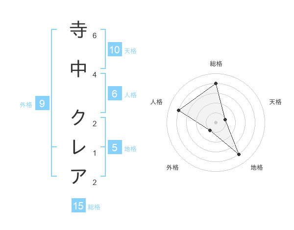 寺中 クレアさんの総格は15画の4点!