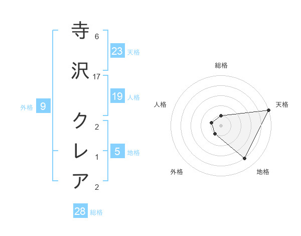寺沢 クレアさんの天格は23画の5点!