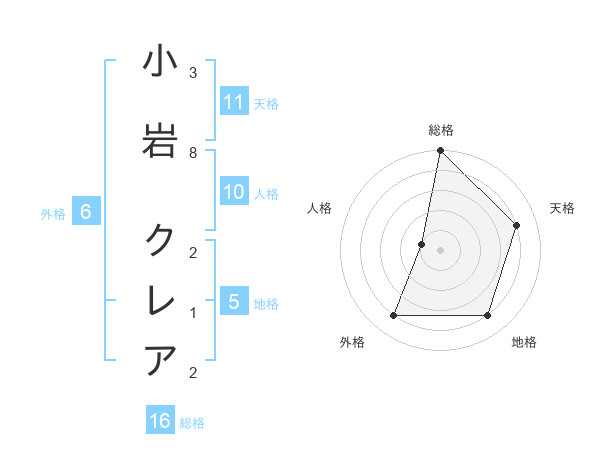 小岩 クレアさんの総格は16画の5点!