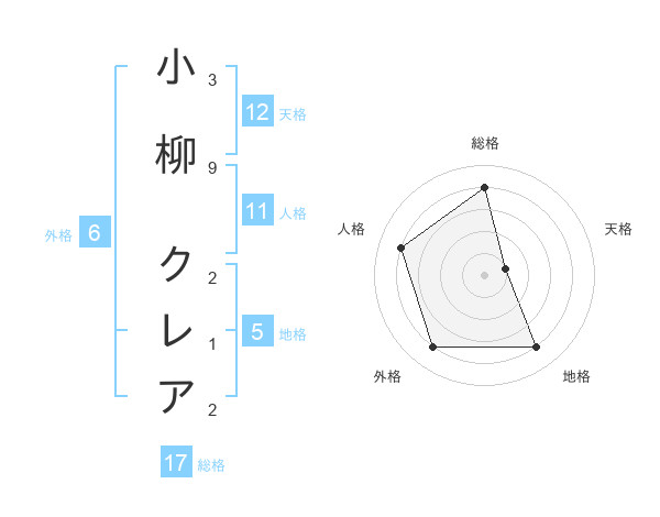 小柳 クレアさんを姓名の画数から五運を鑑定