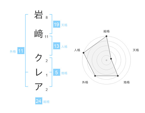 岩﨑 クレアさんの総格は24画の5点!