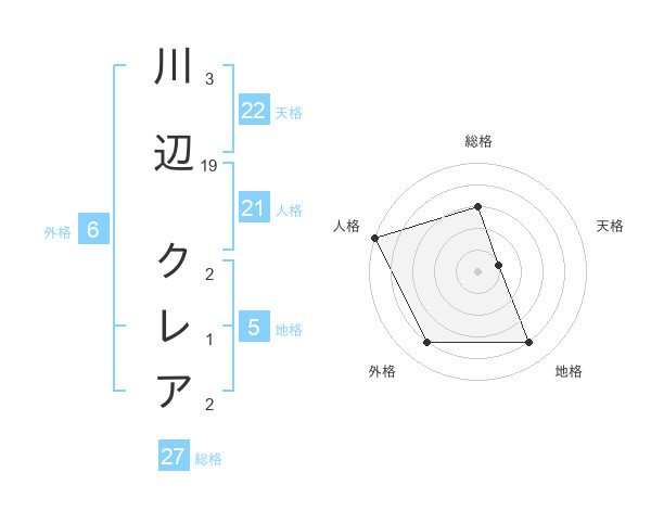 川辺 クレアさんを姓名の画数から五運を鑑定