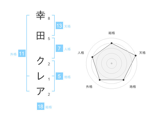 幸田 クレアさんを姓名の画数から五運を鑑定