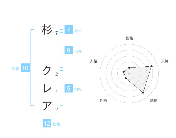 杉 クレアさんの総格は12画の1点!
