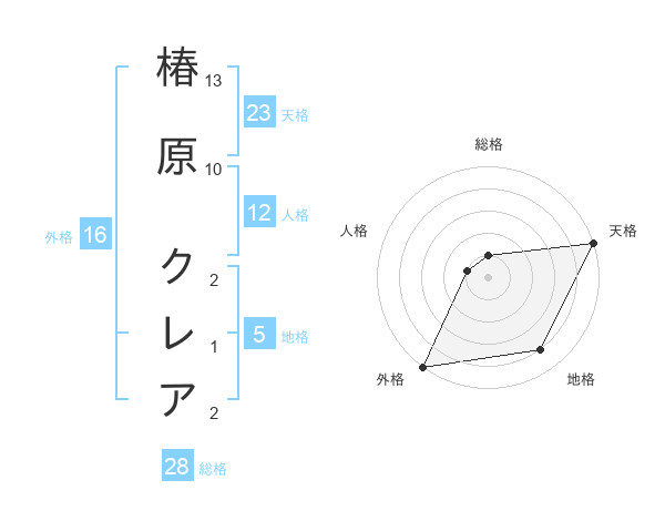 椿原 クレアさんを姓名の画数から五運を鑑定