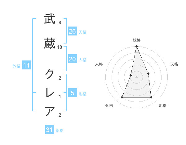 武蔵 クレアさんを姓名の画数から五運を鑑定