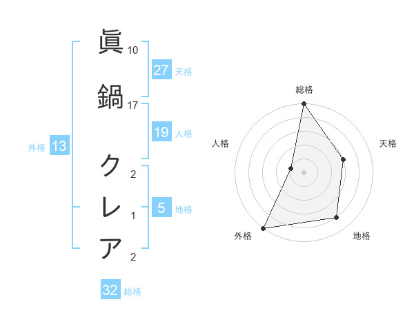 眞鍋 クレアさんを姓名の画数から五運を鑑定