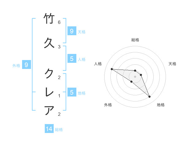 竹久 クレアさんの総格は14画の1点!