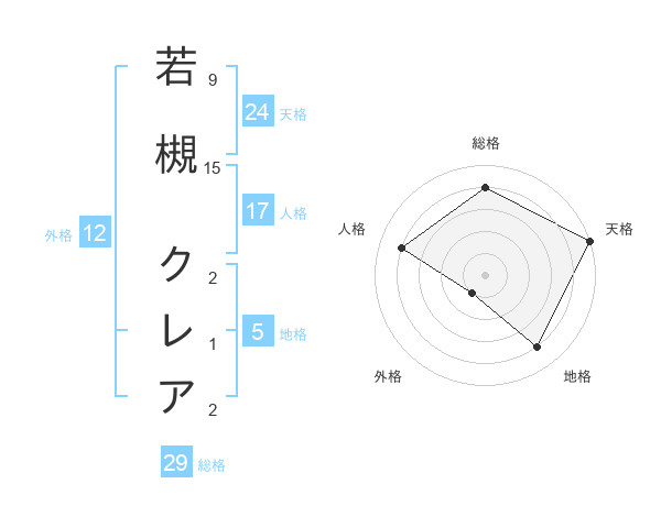 若槻 クレアさんの総格は29画の4点!