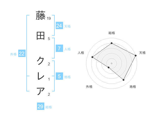 藤田 クレアさんの総格は29画の4点