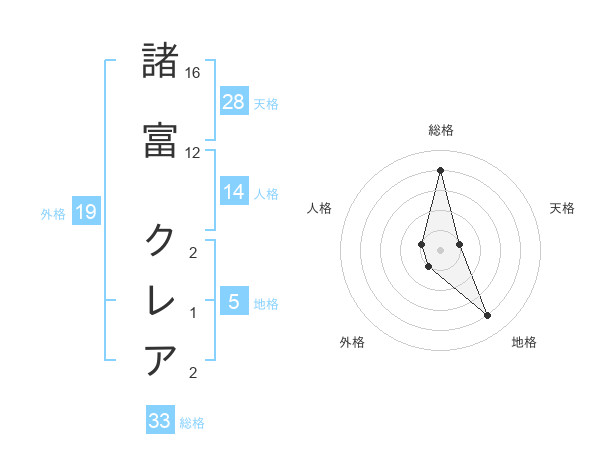 諸富 クレアさんの外格は19画の1点!