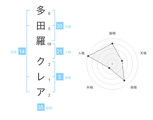 多田羅 クレアさんを姓名の画数から五運を鑑定