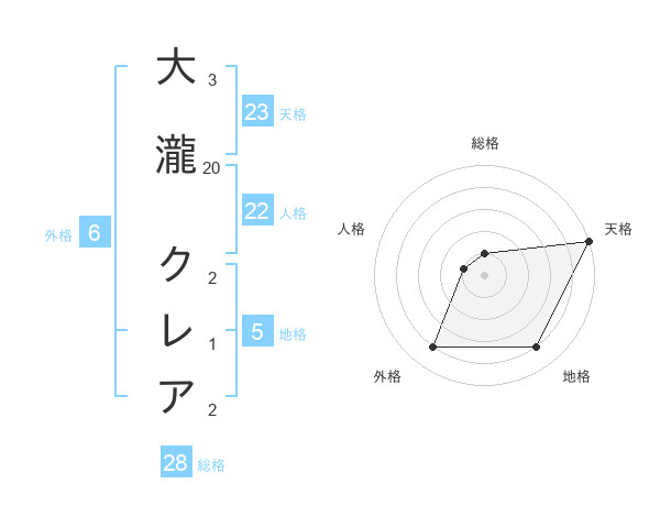 大瀧 クレアさんを姓名の画数から五運を鑑定