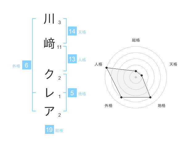 川﨑 クレアさんの総格は19画の1点!