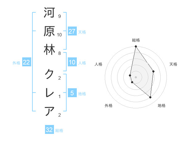 河原林 クレアさんの総格は32画の5点