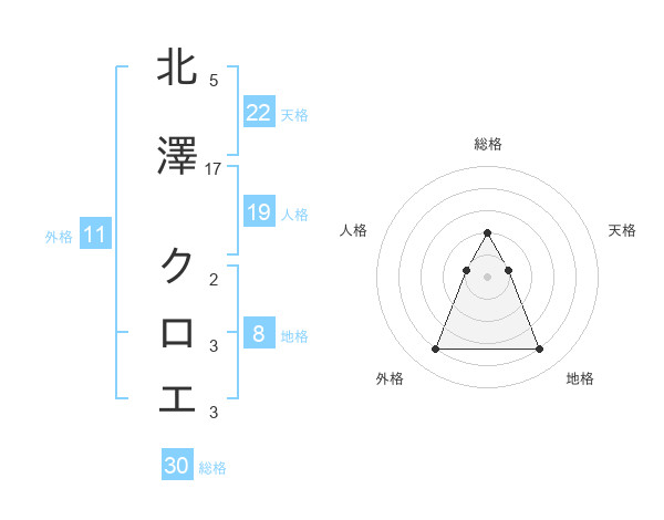 北澤 クロエさんを姓名の画数から五運を鑑定