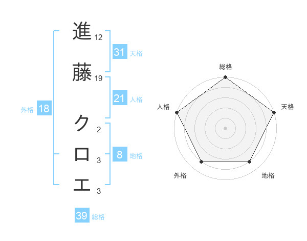 進藤 クロエさんの天格は31画の5点!