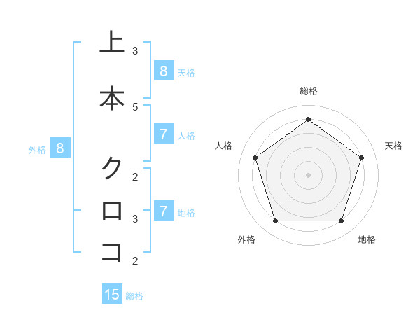 上本 クロコさんの天格は8画の4点!