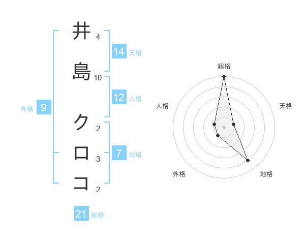 井島 クロコさんの総格は21画の5点!