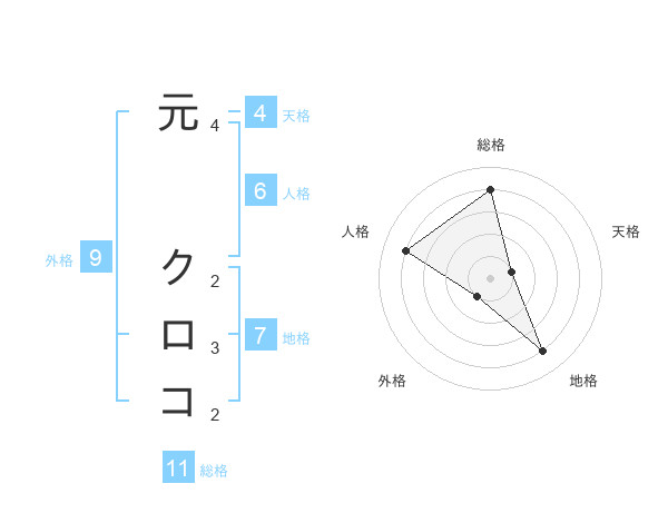 元 クロコさんの総格は11画の4点!
