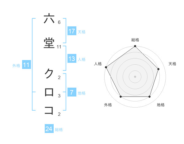 六堂 クロコさんを姓名の画数から五運を鑑定
