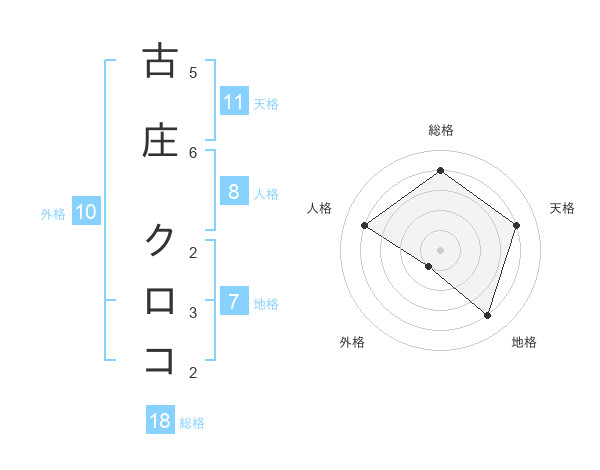 古庄 クロコさんの天格は11画の4点!