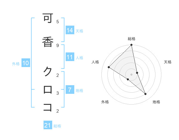 可香 クロコさんの総格は21画の5点!