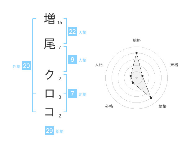 増尾 クロコさんの天格は22画の1点!
