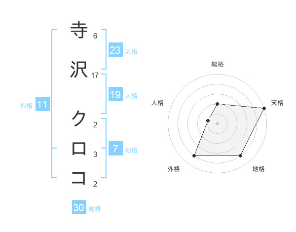 寺沢 クロコさんの天格は23画の5点!