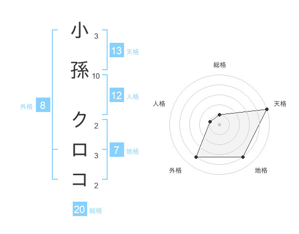 小孫 クロコさんを姓名の画数から五運を鑑定