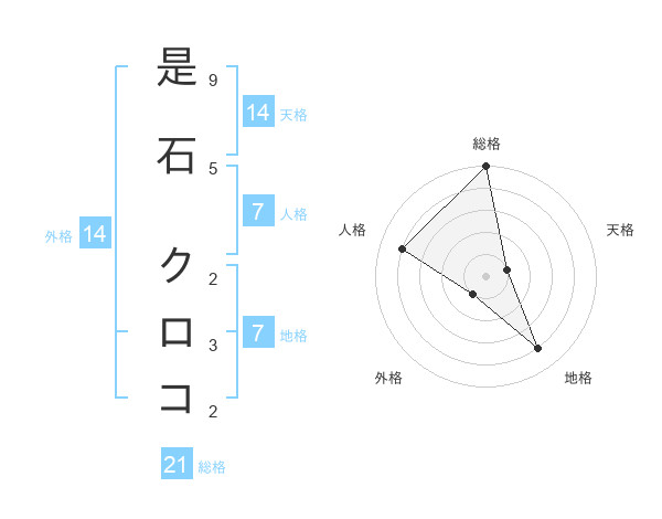 是石 クロコさんの総格は21画の5点!