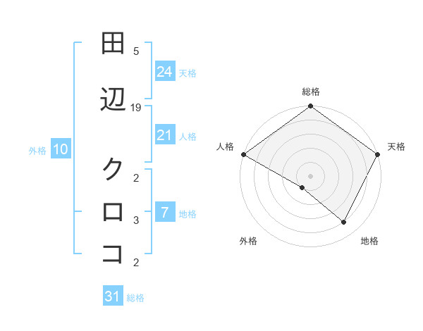 田辺 クロコさんの総格は31画の5点!