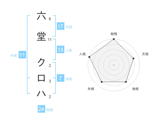 六堂 クロハさんを姓名の画数から五運を鑑定