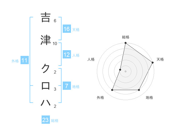吉津 クロハさんの総格は23画の5点!