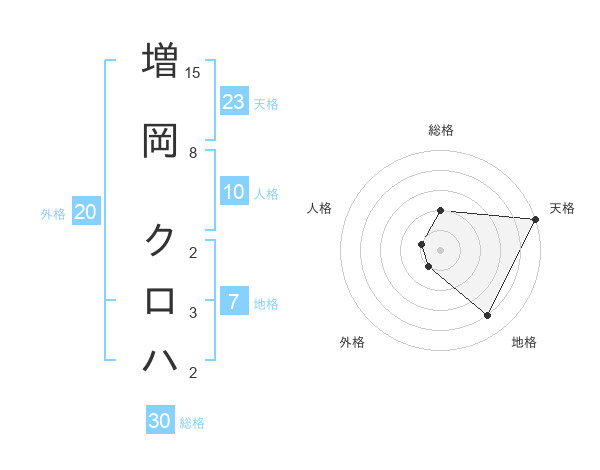 増岡 クロハさんの天格は23画の5点!