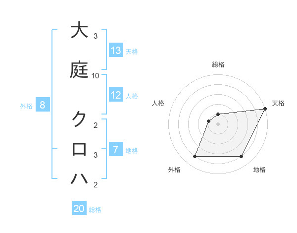 大庭 クロハさんの天格は13画の5点!
