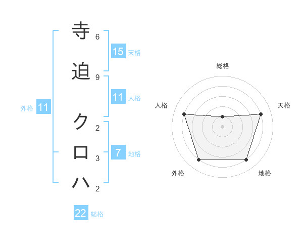 寺迫 クロハさんの総格は22画の1点!