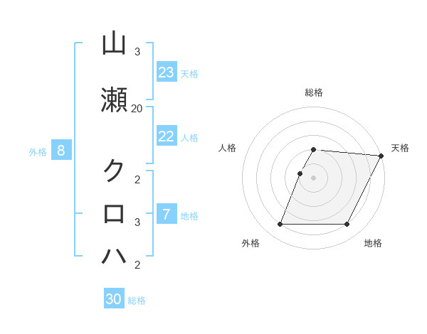 山瀬 クロハさんの天格は23画の5点!