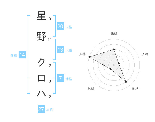 星野 クロハさんの天格は20画の1点!