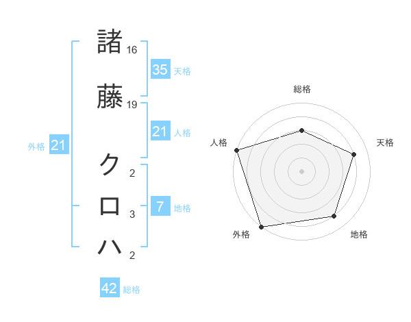 諸藤 クロハさんを姓名の画数から五運を鑑定