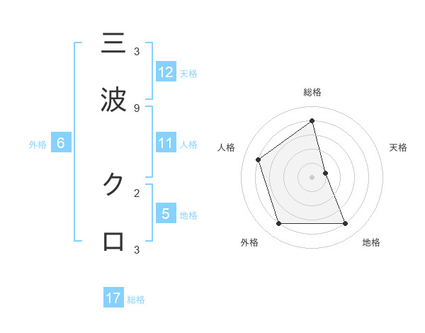三波 クロさんの地格は5画の4点!