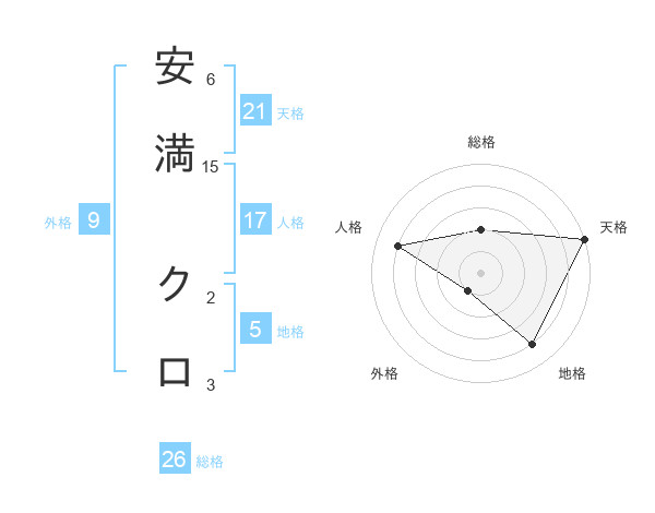 安満 クロさんの天格は21画の5点!