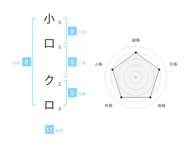 小口 クロさんの天格は6画の4点!