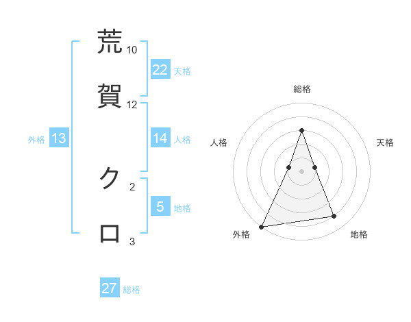 荒賀 クロさんの外格は13画の5点!