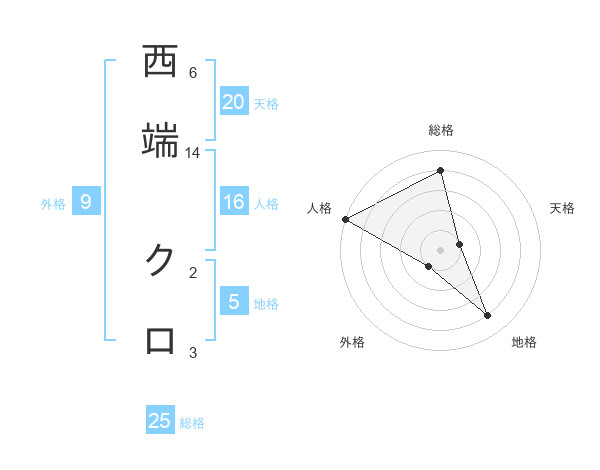 西端 クロさんの総格は25画の4点!