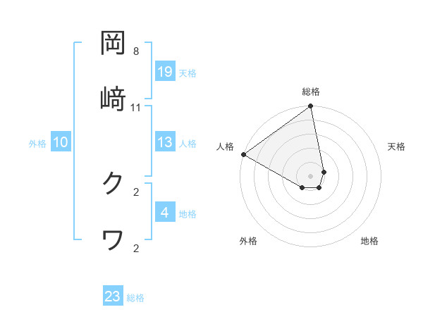 岡﨑 クワさんの総格は23画の5点!