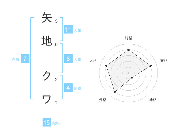 矢地 クワさんの総格は15画の4点!