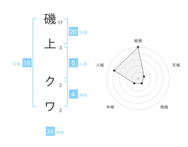 磯上 クワさんの総格は24画の5点!