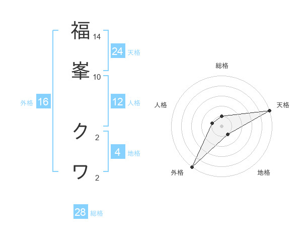 福峯 クワさんの総格は28画の1点!