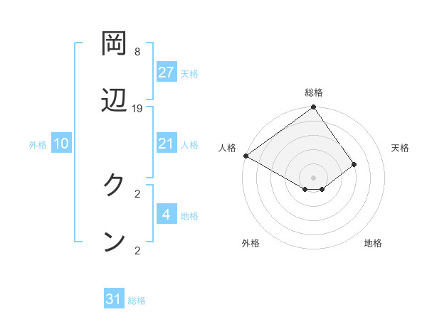 岡辺 クンさんの総格は31画の5点!